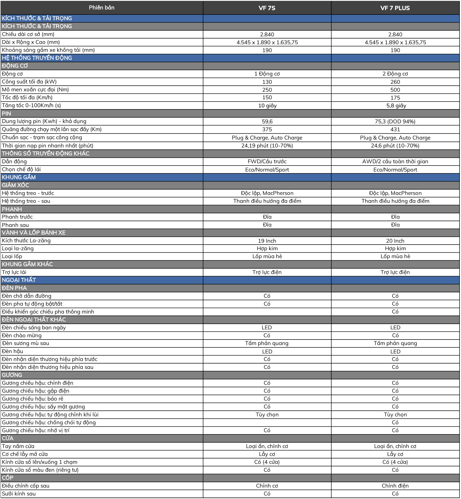 | Thông số kỹ thuật VF7 | Base | Plus |