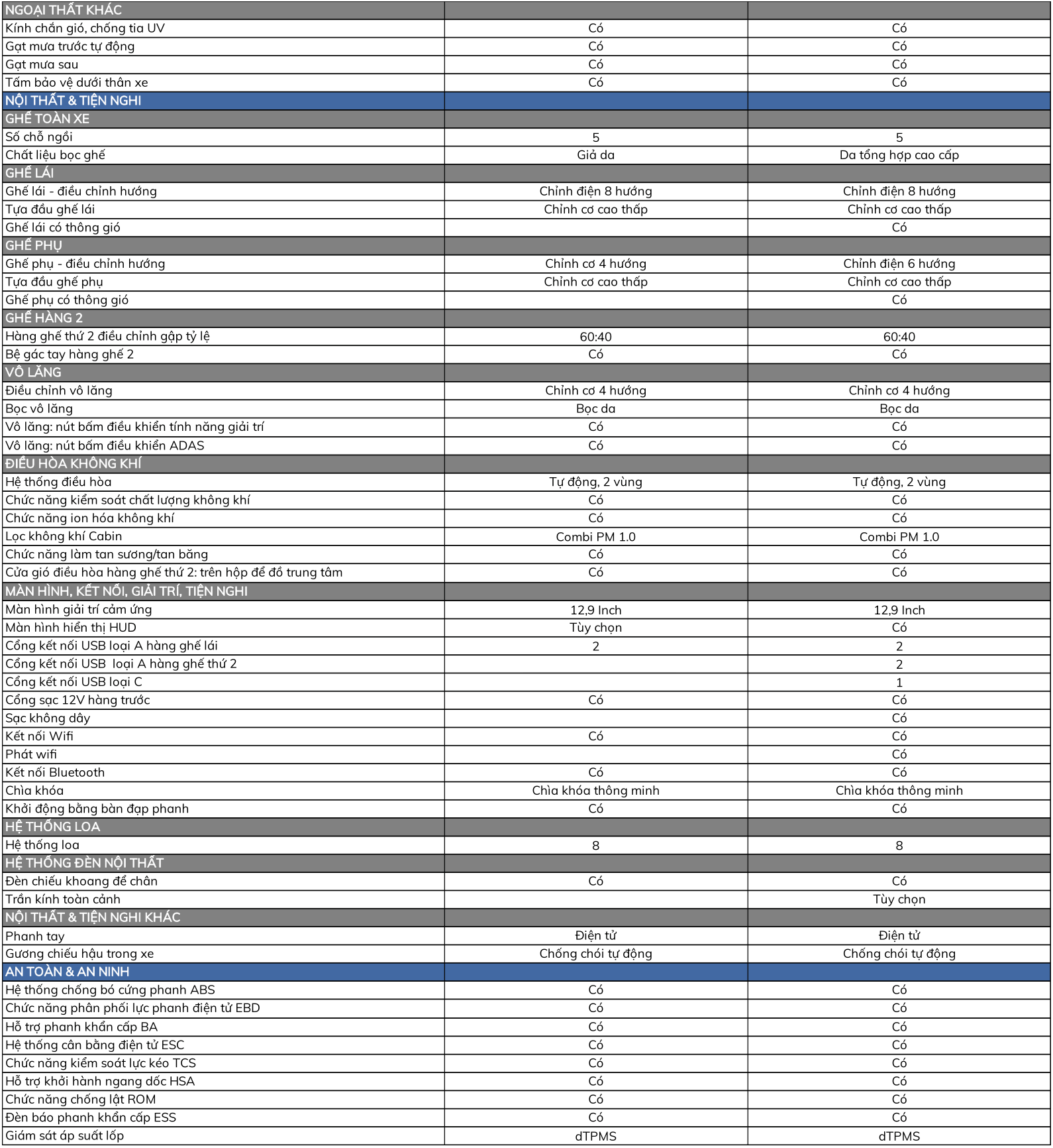 | Màu nội thất | Đen – đỏ | Đen – đỏ |
