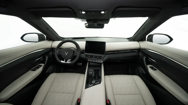 Với chiều dài 4.545mm (chiều dài cơ sở 2.840 mm), rộng 1.890mm, cao 1.635,75mm và khoảng sáng gầm xe 190 mm, VF 7 sở hữu không gian nội thất khoáng đạt, rộng rãi với dàn ghế được bọc da cao cấp.